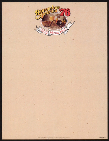 Vintage letterhead MINUTE MAID Coca Cola Remember America '76 unused n-mint+