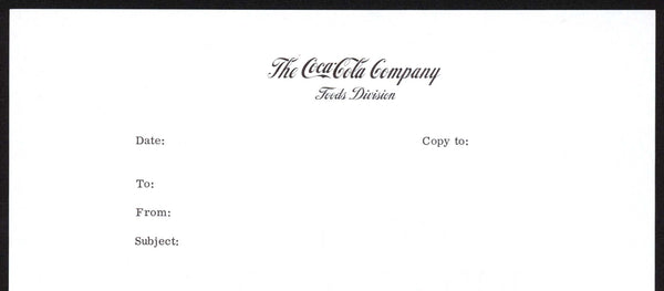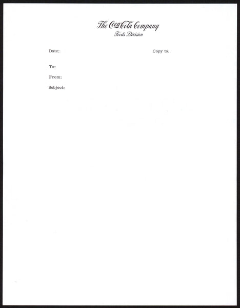 Vintage letterhead THE COCA COLA COMPANY Foods Division new old stock n-mint+