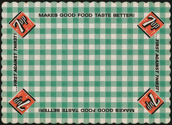 Vintage placemat 7 UP First Against Thirst Makes Good Food Taste Better n-mint+