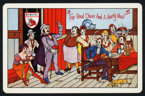 Vintage single playing card RED BULL INN man singing to crowd Pennsylvania Ohio