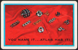 Vintage single swap playing card, ATLAS blue border "You Name It ... Atlas Has It" (not marked but this is from West Pittston Pennsylvania), picturing roller chain and sprockets. See scans for details on the condition. The black border is so all the edges can be seen and is not part of the playing card itself. NOTE: All of the playing cards I have listed are guaranteed to be 100% authentic originals. You will receive a random card from the deck with the advertising shown in the listing. Cards are generally clean but there may be some spots/scuffs or age toning. If you need specific details on the condition, ask before making the purchase. Thank you for your purchase, I appreciate it.