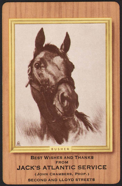 Vintage playing card JACKS ATLANTIC SERVICE gas oil Busher horse John Chambers