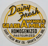 Vintage milk bottle cap DAIRY FRESH Grade A Whole Milk Grants Pass Oregon unused