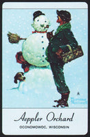 Vintage single swap playing card, AEPPLER ORCHARD Oconomowoc Wisconsin, picturing a man admiring a snowman with artwork by Norman Rockwell. See scans for details on the condition. The black border is so all the edges can be seen and is not part of the playing card itself. NOTE: All of the playing cards I have listed are guaranteed to be 100% authentic originals. You will receive a random card from the deck with the advertising shown in the listing. Cards are generally clean but there may be some spots/scuffs or age toning. If you need specific details on the condition, ask before making the purchase. Thank you for your purchase, I appreciate it.