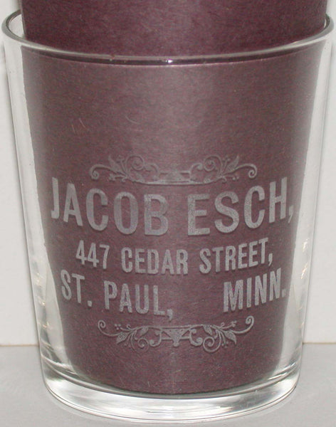 Vintage shot glass JACOB ESCH whiskey early etched St Paul Minnesota excellent++