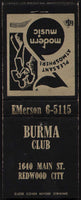 Vintage full matchbook BURMA CLUB couple dancing Redwood City California unused