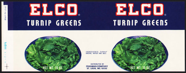 Vintage label ELCO Turnip Greens pictured Franman Company St Louis Missouri n-mint+
