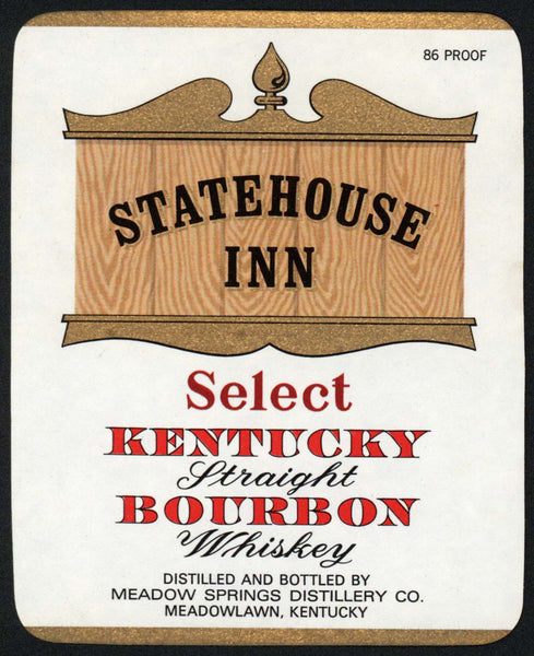 Vintage label STATEHOUSE INN Whiskey Meadow Springs Distillery Co Meadowlawn KY