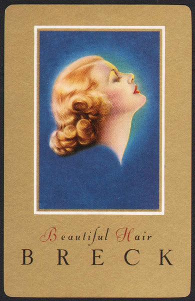 Vintage playing card BRECK shampoo Beautiful Hair slogan picturing a young woman
