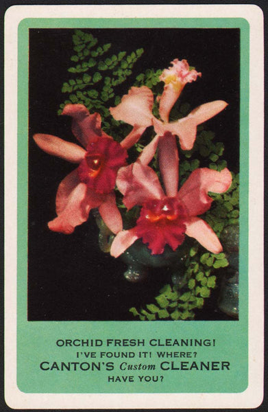 Vintage playing card CANTONS CUSTOM CLEANER Orchid Fresh Cleaning flower picture