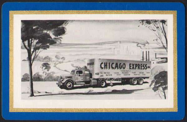 Vintage playing card CHICAGO EXPRESS blue border picturing their Terminals truck