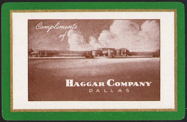 Vintage playing card HAGGAR COMPANY green border building pictured Dallas Texas