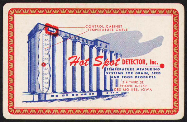 Vintage playing card HOT SPOT DETECTOR INC grain bins pictured Des Moines Iowa