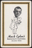 Vintage playing card MACK EPLENS Restaurant Cafeteria black border Abilene Texas