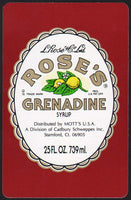 Vintage playing card ROSES GRENADINE SYRUP Motts Cadbury Schweppes Stamford CT